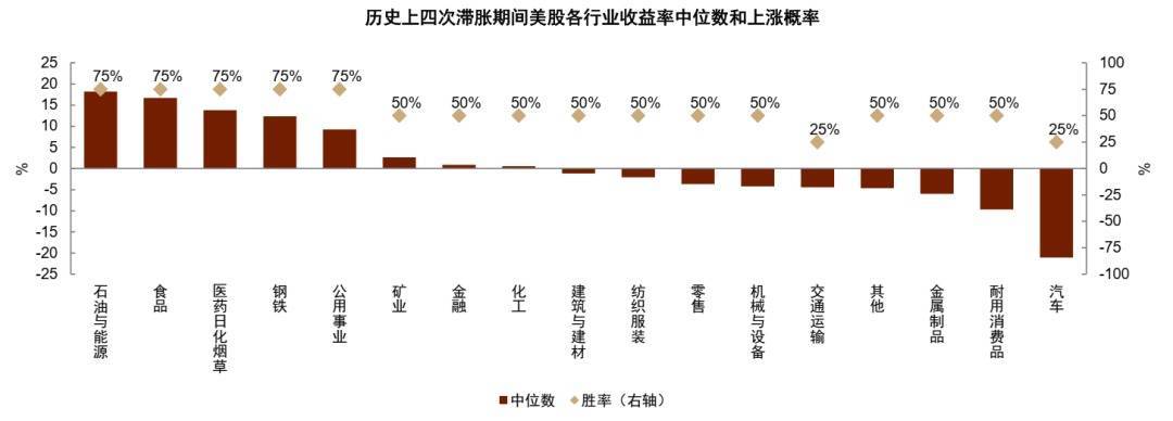 图表10:历史四次美国滞胀期间的行业涨跌幅中位数排序