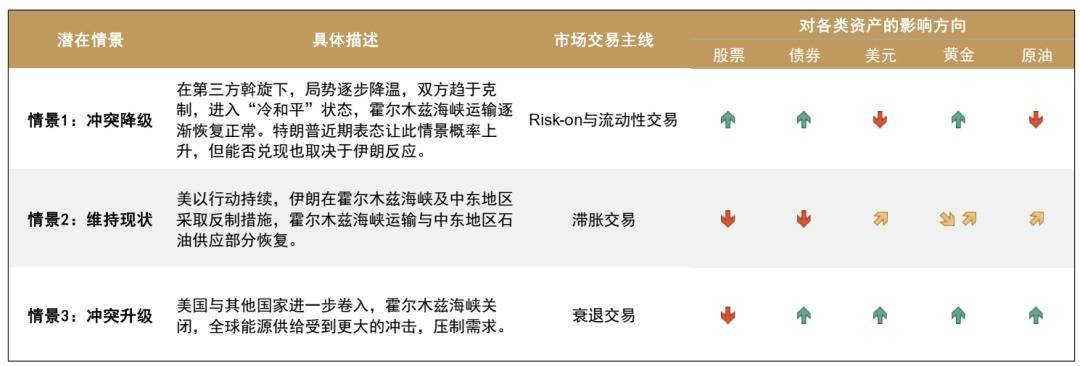 情景2下,若美伊继续交火、伊朗对海峡和中东地区实施有限打击,但石油运输与供给仅部分受扰,则对应“滞胀交易”;