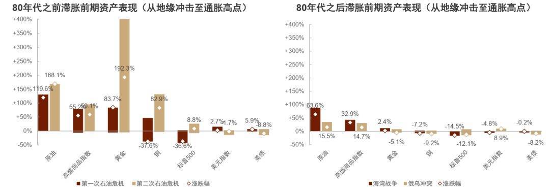 图表11:以80年代为分界线,滞胀期间的资产波动明显降低,黄金由涨转跌
